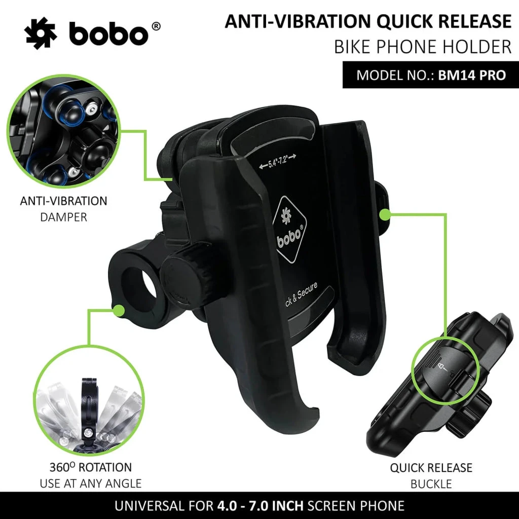 BOBO BM14 PRO Quick Release with Vibration Controller Enhanced BM4 PRO Bike / Cycle Phone Holder Motorcycle Mobile Mount