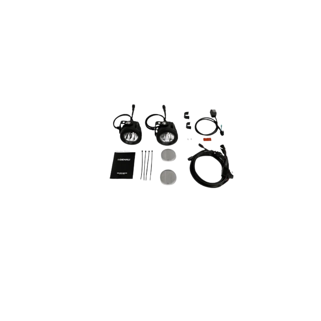 Like the other lights in the DENALI 2.0 lineup, the DR1 kit uses a new HotSwap™ modular wiring harness that, by default, causes these lights to function at full brightness. But if you would like them to operate at both half and full power, simply add the dual intensity DataDim™ controller. No other changes are required except to replace the original relay with the DataDim™ module and connect one wire to the high-beam circuit. (You can also purchase a three-position switch to manually control light intensity independent of the bike’s high beam.)