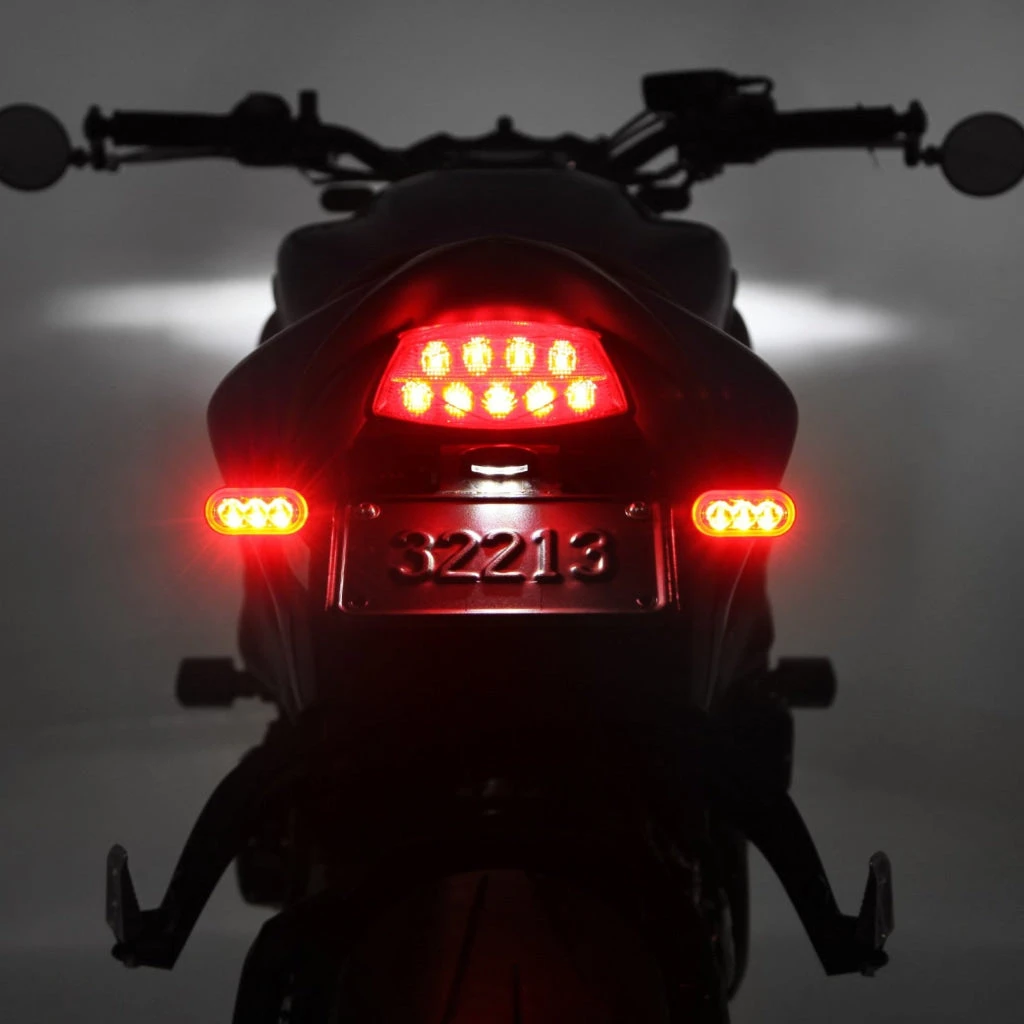 The T3 is a unique and innovative approach to the common turn signal, blending white visibility lighting, red brake lighting, and amber turn signal lighting into one compact housing. The rear T3 signal pods feature super bright red LEDs for run and brake functionality that also switch to amber when your turn signal is activated, while the front T3 turn signals feature super bright white running lights that switch to amber when your turn signal is activated. Unlike other switchback turn signals, the T3s feature two separate rows of high-power single-color LEDs as opposed to weaker bi-color LEDs. The result is a shockingly bright light pod that rivals the intensity of 10 watt LED driving lights.