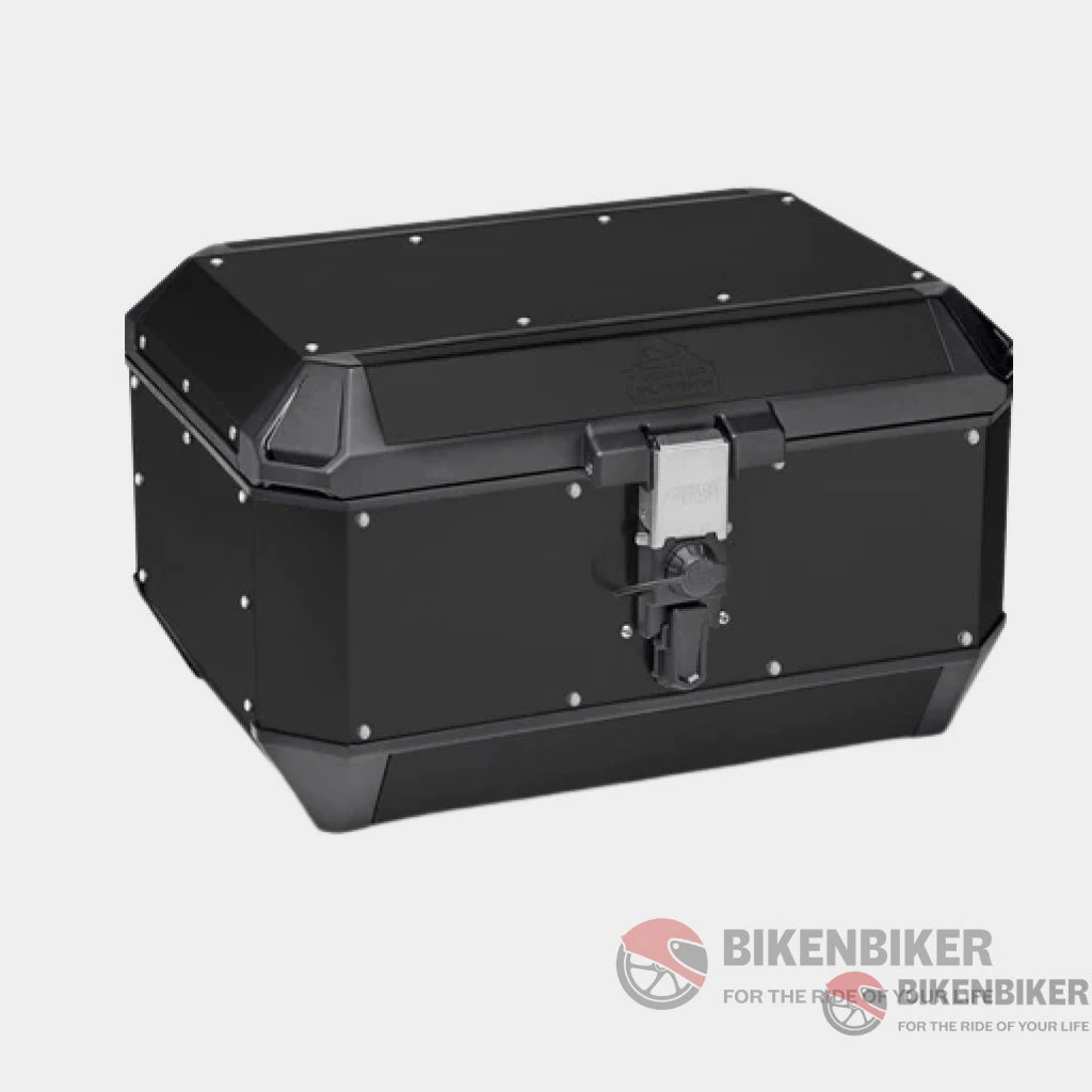 Trekker Alaska motorcycle case in aluminium, matt black painted, 56 LTR. Comfortably holds 2 modular helmets.